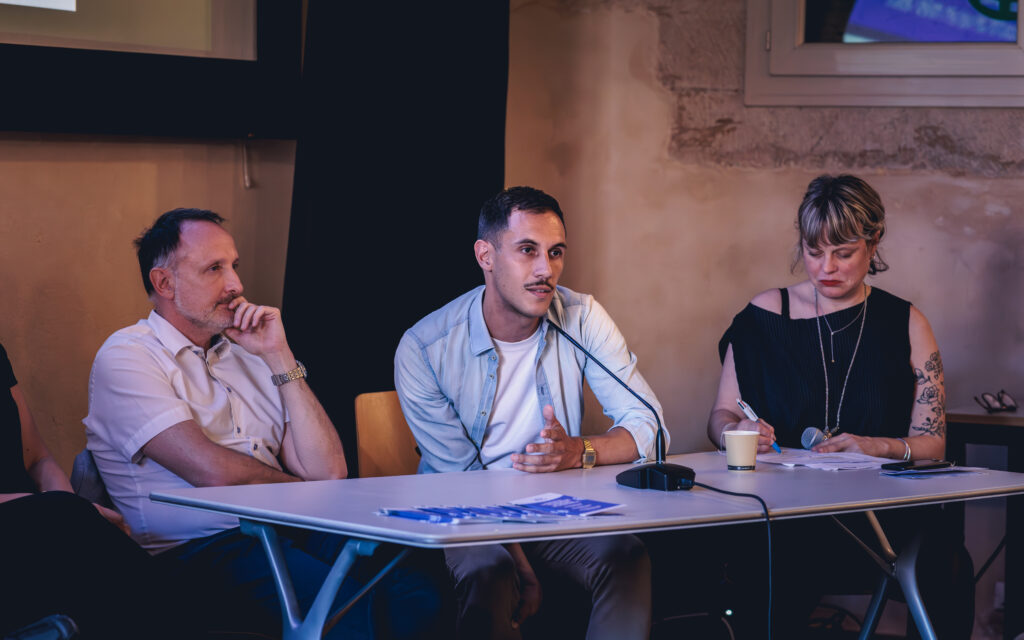 Facilitation : Aurélie Berducat, Les Ateliers Demain – Modération ; Prises de parole : Stéphane Beroud, Délégué territorial Sud du Conseil National des Activités Privées de Sécurité – CNAPS (Ministère de l’Intérieur) ; Clément Rabiller, DGA Ville plus Juste, plus Sûre, plus Proche – Direction Santé Publique et Inclusion, Pôle Inclusion et Droits des Femmes, Ville de Marseille ; Cécilia Salone, Direction Bird Formation, adhérente UFACS – Marseille ; Christophe Denoyelle, Dirigeant Step by Step Sécurité – Rennes ; Vanessa Garouche, Direction CIDFF – Arles ; Pierre-Alain Etchegaray, Direction Cabaret Aléatoire – Marseille ; Justine Noël, Responsable du dispositif Safer – Marseille.