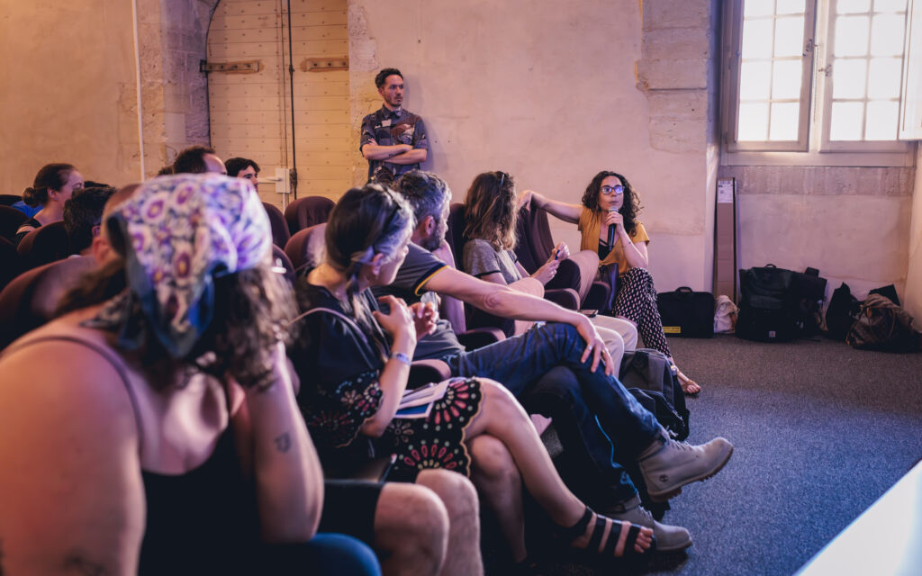 Facilitation : Aurélie Berducat, Accompagnement en ingénierie culturelle – Les ateliers demain ; Témoignages : Christophe Denoyelle, Direction – Step by Step Sécurité ; Philippe Cuvelette, Directeur – Risk Manager Moë Kan ; Tyka Raimundo, Régisseure générale, chargée de sécurité incendie, sûreté, secours et dispositifs VSS.